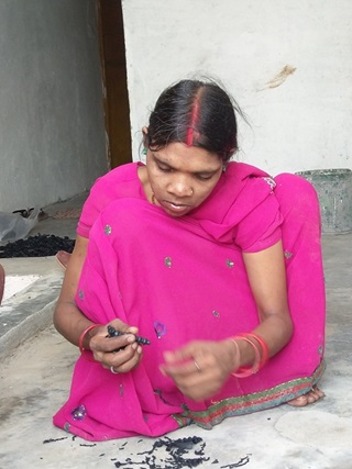 Sanjay had come to Gurgaon two years back and has worked in various factories in the area. Hirawati does piece-rate work at home in order to supplement this income. Presently, she manages to earn Rs 25 for thousand pieces for work involving the clearing of rubber ends.