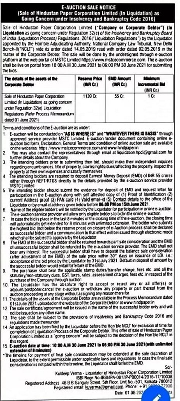 On 13 May 2018, the National Company Law Tribunal (NCLT) – in response to a petition by Alloys and Metals (India), which owed Rs 98 lakh to HPCL — directed initiation of the CIR process against HPCL under the Insolvency and Bankruptcy Code (IBC), 2016. The NCLT suspended the board of directors of HPCL and a resolution professional (RP) and a committee of creditors were put in place. Though the chairman and managing director of HPCL filed an appeal in the National Company Law Appellate Tribunal (NCLAT), it was dismissed on January 8, 2019, and on May 2, 2019, NCLT ordered for the liquidation of the two paper mills. In its order, the NCLT said the RP didn’t submit a resolution plan to it within the mandatory 270 days. After the time limit had lapsed, the NCLT felt that the application of the creditor “merits consideration”. Finally, after several rounds of meetings between all stakeholders and a number of hearings, the NCLT, on April 26, 2021, asked the liquidator to sell all the assets of the two paper mills.