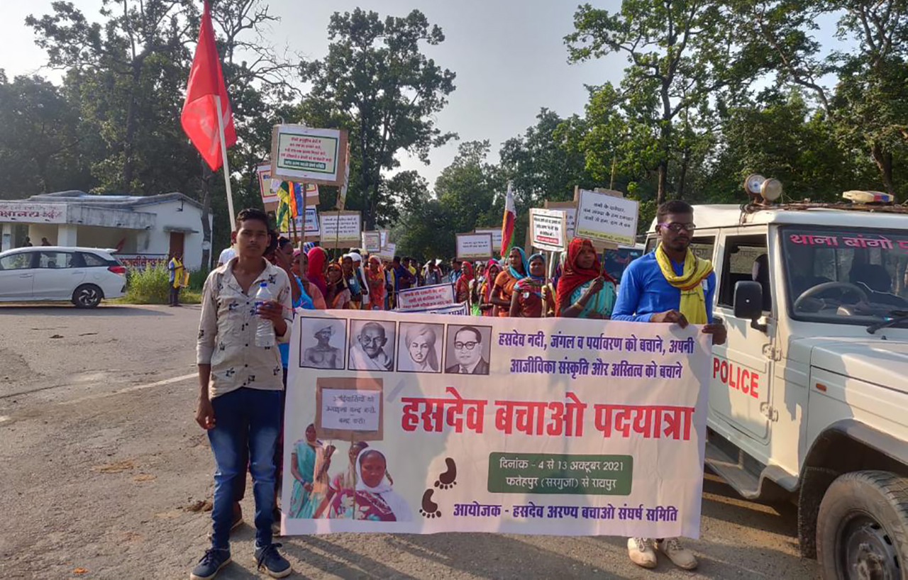 Starting from 4 October 2021, more than 250 Adivasi residents from 30 villages of the Hasdeo Aranya region of Surguja are currently marching under the banner of the Hasdeo Bachao Padyatra. The villagers began their foot march from Madanpur village, covering the more than 300 km distance to the capital, Raipur over 10 days. The padayatra (foot march) reaches Raipur today, where they will submit their demands to the state Governor and Chief Minister.
