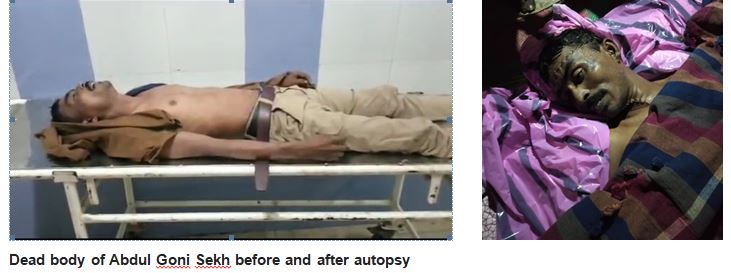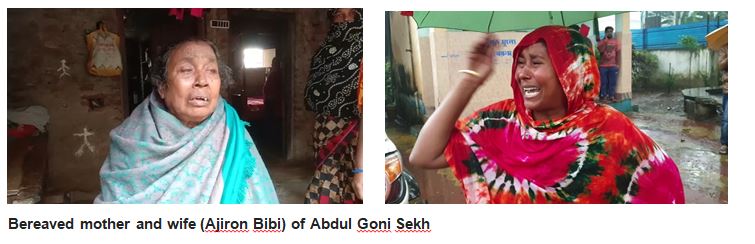 The details of the case are given in the fact finding report prepared by MASUM and attached with the complaint letter sent to the NHRC. According to the report, Abdul Goni Sekh is a migratory labour and used to work in Haryana as a mason. He has two brothers, Mr. Sajahan Sekh (50) and Mr. Moti Sekh (42), lives in Panighata with their own families and their mother, Sahida Bewa.
