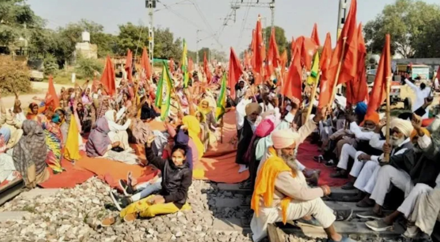 A report on a protest (Rail Roko) program by the Samyukt Morcha (united front) of the rural and agricultural labor unions in Punjab, pressing for their demands.