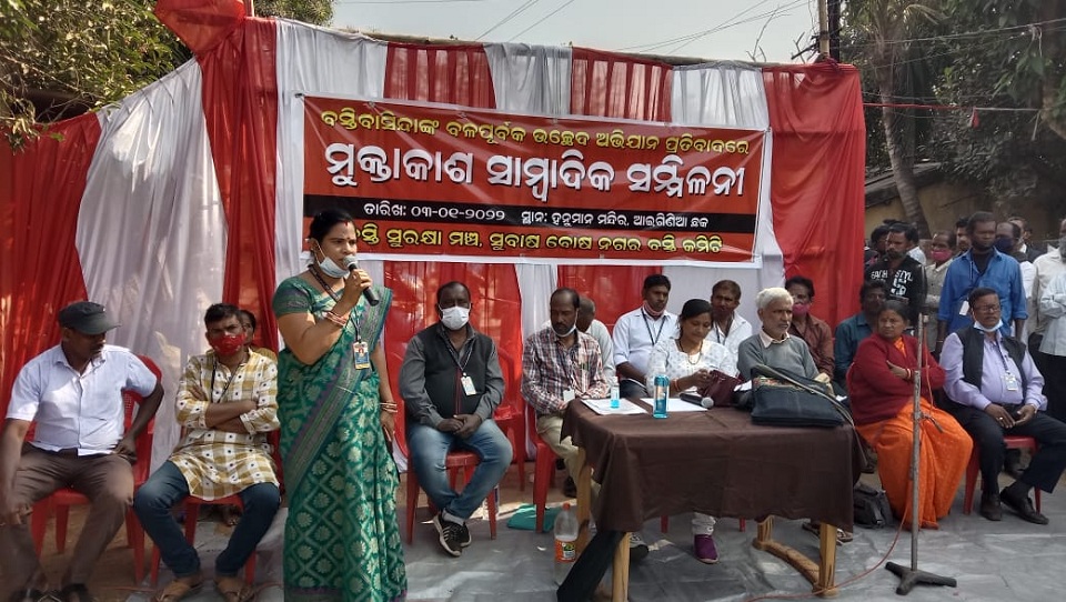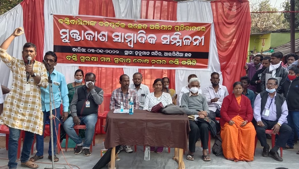 This open-air press meet was presided by President of Basti Suraksha Manch Hena Barik, General Secretary Pramila Behera, Treasurer Muralidhara Bhuiyan, and Radharani Moharana, Saroj Das, Rama Chandra Sahu, Gadadhar Sahu, Batakrushna Rout; President of Subash Bose Basti committee Puskar Subudhi, Journalist Rabindra Natak, Treasurer Bichitra Patra, and Prabhati Tripathy, Prabhasini Sahu, Jayant Mogharana, Dhruba Sahu; and the President of Puri Basti Suraksha Manch Krushna Mohan Pradhan and the Advisor of Basti Suraksha Manch Advocate Biswapriya Kanungo.