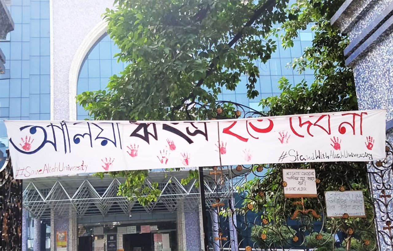 ভোট, ভোট-হিংসা, হার-জিত, বিজয় মিছিল, এই সব কিছুর আড়ালে শেষ দুই মাসের বেশি সময় জুড়ে কলকাতায় আন্দোলন করছেন আলিয়া বিশ্ববিদ্যালয়ের ছাত্র-ছাত্রীরা। দশ দফা দাবি নিয়ে তাঁরা আন্দোলনে নেমেছেন। তাঁদের মূল দাবিগুলির মধ্যে রয়েছে, একটি জমি, ছাত্রদের মতে যা আলিয়ার জমি, যেট এমএমএ দফতর কলকাতার একটি মেডিক্যাল কলেজকে দিয়ে দেওয়ার ‘চক্রান্ত’ করছে। এ ছাড়াও আন্দোলকারী ছাত্র সাজিদুরের বক্তব্য অনুযায়ী, আলিয়া বিশ্ববিদ্যালয়ের তালতলায় যে ক্যাম্পাস রয়েছে, সেখানে শিক্ষার পরিবেশ দিন দিন নষ্ট করা হচ্ছে, তাঁদের দাবি অবিলম্বে তালতলা ক্যাম্পাসের রক্ষাণাবেক্ষণের দিকে মাইনরিটি বোর্ডকে নজর দিতে হবে। এ ছাড়াও ছাত্র-ছাত্রীদের বক্তব্য অনুযায়ী, বাইরে থেকে পড়তে আসা ছাত্র-ছাত্রীরা হস্টেলের সুযোগ সুবিধা পাচ্ছেন না। এই দাবিগুলোর পাশাপাশি ছাত্র-ছাত্রীরা তাঁদের আন্দোলনের মধ্যে থেকে বিশ্ববিদ্যালয় কর্তৃপক্ষের দুর্নীতি, ক্যাম্পাসকে গুন্ডামির আখড়ায় পরিণত করা, মাইনরিটি বোর্ডের দুর্নীতির মতো একাধিক অভিযোগকে সামনে রেখে আন্দোলনে নেমেছেন।