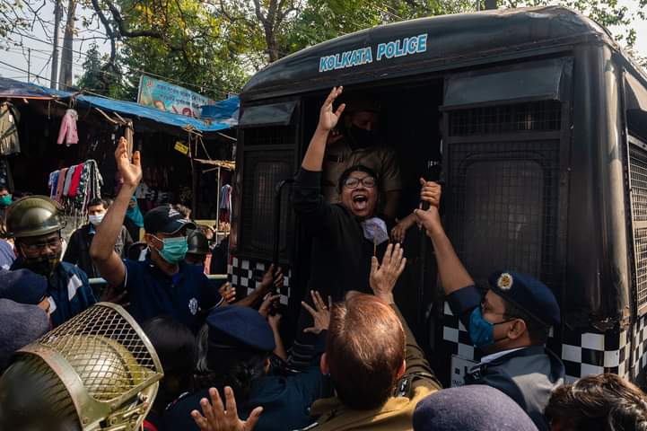 কলকাতার বিক্ষোভ মিছিলে উপস্থিত যাদবপুর বিশ্ববিদ্যালয়ের ছাত্রী এবং ফেমিনিস্ট ইন রেজিস্টেনসের সদস্যা ঝেলাম রায়ের সঙ্গে যোগাযোগ করা হলে জানা যায়, পুলিশ তাঁদের মিছিল কিছু দূর এগোতেই গ্রেফতার করে। এবং তাঁদের বউবাজার থানায় নিয়ে আসা হয় । প্রায় ৩২ জন বিক্ষোভকারীকে গ্রেফতার করে পুলিশ।