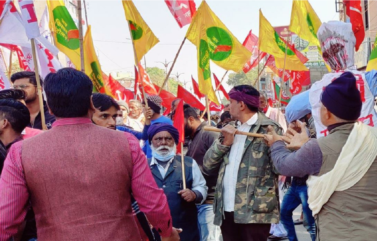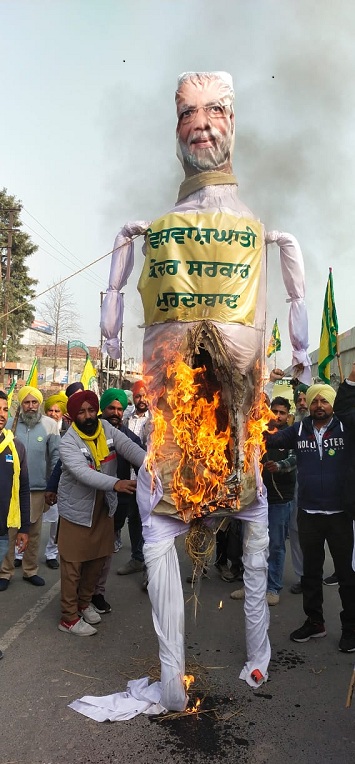 The Government of India’s reneging of the promises made to the farmers of the historic Kisan Andolan of 2020-21 was marked as “betrayal day” with demonstrations, marches, and effigy burning in Punjab, Haryana, Uttar Pradesh, Bihar, West Bengal, Maharashtra, Karnataka, Madhya Pradesh, Andhra Pradesh, Himachal Pradesh, Telangana, Odisha, Tamil Nadu, Rajasthan, Gujarat, Tripura among other states*.