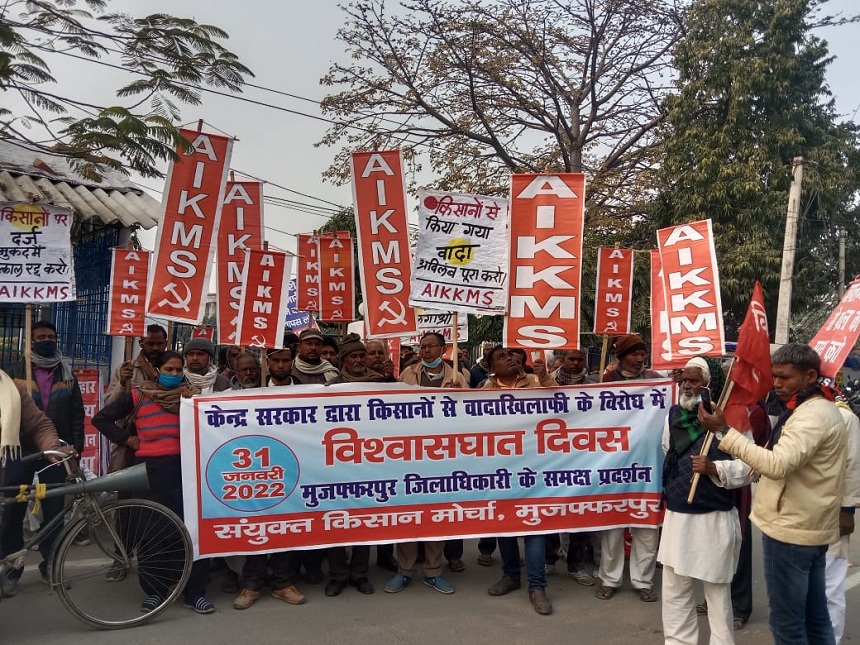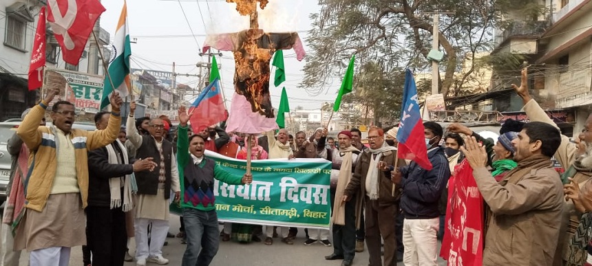Today, following the call of SKM, tens of thousands of farmers across the country observed the “Day of Betrayal”. Protest demonstrations, rallies, effigy burning were held in hundreds of districts and blocks across India, and memoranda were submitted in the name of the President of India through the District Collectors, SDMs and ADMs.