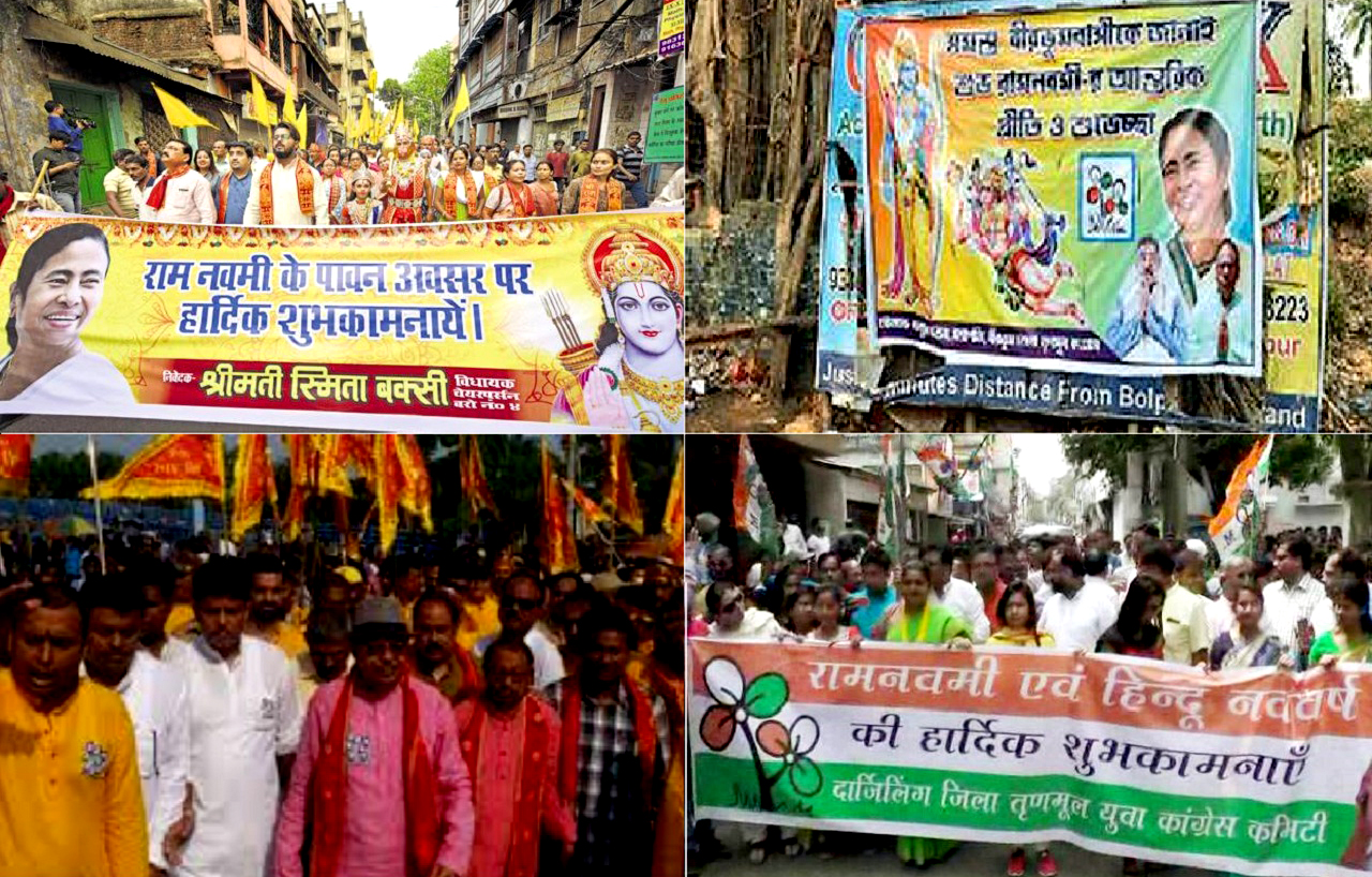 ধীরে ধীরে এই উগ্র হিন্দু সংস্কৃতিকে নিজের করে নিয়েছেন তৃণমূল কংগ্রেস নেত্রী মমতা বন্দ্যোপাধ্যায়। এখন আর ঢাক গুড়গুড় নেই। নির্বাচনি ফায়দা তোলার জন্য কোভিড-পরবর্তী রামনবমী পালনে, আস্ফালনে, অস্ত্রের ঝনঝনানিতে যুগপৎ ভক্তি ও ভীতি প্রদর্শনে রীতিমতো সমানে সমানে পাল্লা দিয়েছে তাঁর দলের নেতা, বিধায়ক, মহাবলী, বাহুবলী এবং যত ভোটকুড়ানির দল।