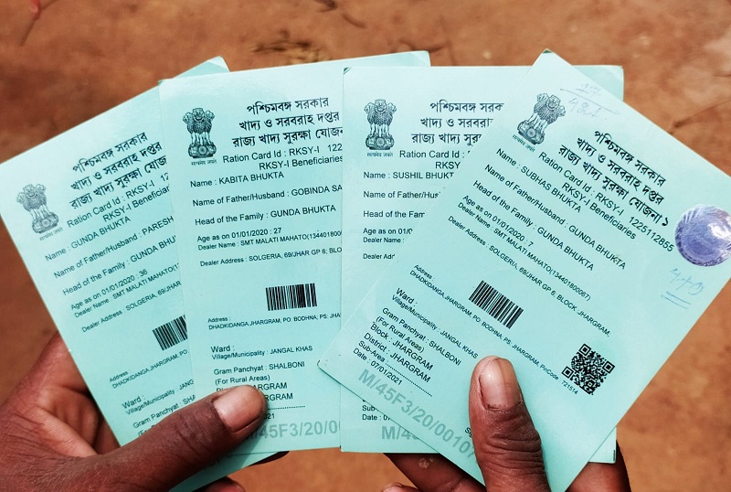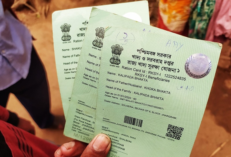 কালীপদ একরকম টেনেই নিয়ে গেলেন তাঁর বাড়ি দেখাতে। সরকারি স্কিমে পাওয়া মানে কোনও আবাস যোজনার বাড়ি। ঠিক কোন বছরে বা আমলে এই বাড়ি কালীপদর জুটেছে, তা অবশ্য তিনি বলতে পারেন না। বারবার সাল-তারিখ জিজ্ঞাসায় বিরক্ত কালীপদের ছেলে চিমটি কাটা সুরে বলল, ‘ওই তাজমহলের বছরে। “ বাড়ির কথা বাড়ান্তরে বিস্তারিত বলা যাবে আপাতত এইটুকু বলা যাক—এই লালমাটির গাঁথনির, দেওয়ালে ফাটল ধরা ১০ বাই পনেরোর বাড়িটি এই বর্ষায় ভেঙে পড়লে অবাক হওয়া যাবে না। এবার কালীপদরা কী খান তাই নিয়ে পড়া গেল। তিনটি কার্ড হাতে উপস্থিত হলেন কালীপদ। হাতপাখার মতো মেলে ধরলেন। ছবি উঠল। কিন্তু, চমকে ওঠার মতো বিষয় হল—স্বপন তো বটেই, কালীপদও আরকেএসওয়াই-১ বা রাজ্য খাদ্য সুরক্ষা যোজনা ১ শ্রেণিভুক্ত। আবার কালীপদ ভক্তার আরকেএসওয়াই ১ রেশন কার্ডের উপর পেন দিয়ে ইংরেজিতে লেখা আছে, ‘এএওয়াই’ বা অন্ত্যোদয় অন্ন যোজনা।