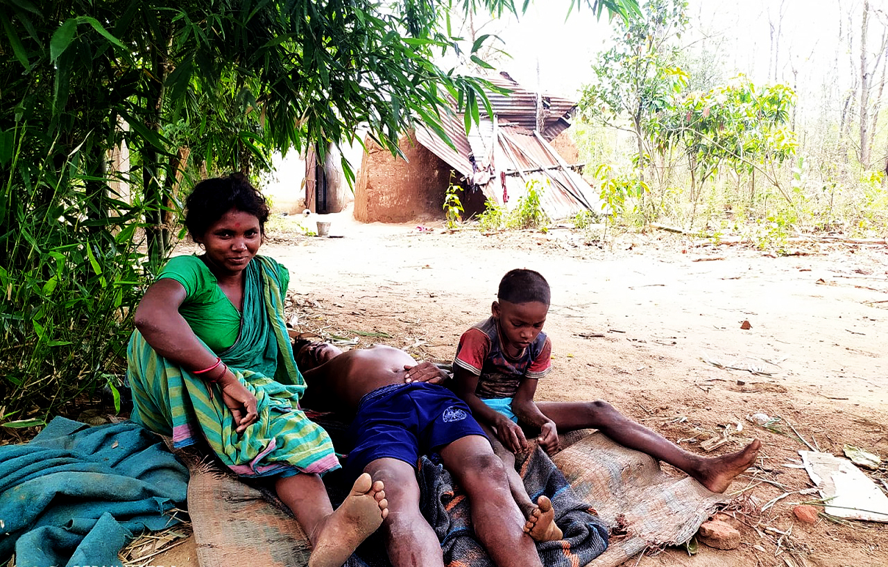এবার যে বাড়িটির কাছে নিয়ে গেলেন নির্মল তা এক খুপড়ির ধসে পড়া কঙ্কাল। এইখানে ঘর ছিল কবিতার। কবিতা, স্বামী গুন্ডা আর দুই ছেলে ক্লাস ফাইভের সুশীল ও ক্লাস টু-এর সুভাষের। আমরা যখন অনাহুতের মত গিয়ে পড়লাম, তখন ভেঙে পড়া ঘরের থেকে ২০ পা দূরে, একটি বাঁশঝাড়ের ছায়ায় কাথা-কম্বল পেতে গুন্ডা চিত হয়ে শুয়ে আছেন, একপাশে বসে কবিতা আর অন্যপাশে সুশীল একটি বাটি থেকে কী যেন কী খাচ্ছে। ৩৪ কিংবা ১১ কেবল বর্ষপুর্তিই হয়, শবরটোলার ‘সেই ট্র্যাডিশন সমানে…’ চলতেই থাকে। কাজের কথায় ফিরি। গুন্ডা ওই রাজ্য সুরক্ষা যোজনা ১-এর চারটি কার্ড মেলে ধরে। কবিতা জানায়, মাসে মোট ৩২ কেজি চাল আর ১২কেজি আটা মেলে। কিন্তু, আবারও হিসেব মেলে না।