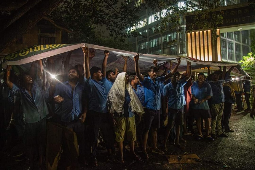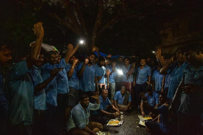 The sanitation workers of Chennai Metro Water Supply and Sewerage Board had refused to go to work and have been on strike for 10 days since the 16th of May inside the campus of the Urban Administrative Office at M.R.C Nagar. Their main demand was to abolish the contract system and make them permanent employees of the board.