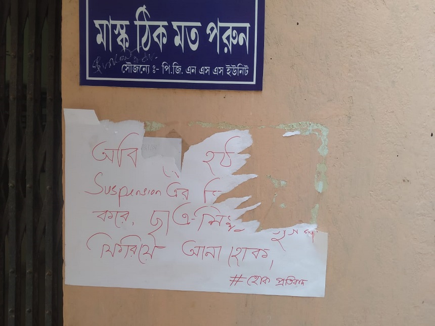 সনৎকে সাসপেন্ড করার পরের দিনই ছাত্ররা প্রতিবাদ জানিয়ে কিছু পোস্টার লাগায় বিশ্ববিদ্যালয়ে। সেই পোস্টারগুলিও ছিড়ে দেওয়া হয়েছে বলে অভিযোগ করেছেন রবিউল। আগামী ৪ঠা জানুয়ারী কমিটি তাঁকে ডেকে পাঠিয়েছে। রবিউলের বক্তব্য, “আমি বা আমরা কেউ ভয় পাই না। নিজের অধিকার চাওয়াটা অন্যায় নয়৷ আমি কোনো দোষ করে থাকলেও সেটা আমায় পরিষ্কার করে বলা হোক, সনৎকে যে সুযোগটাই দেওয়া হয়নি। আমি কমিটির সামনে যাব, আমরা কথা রাখব৷ আন্দোলন চালিয়ে যাব।”