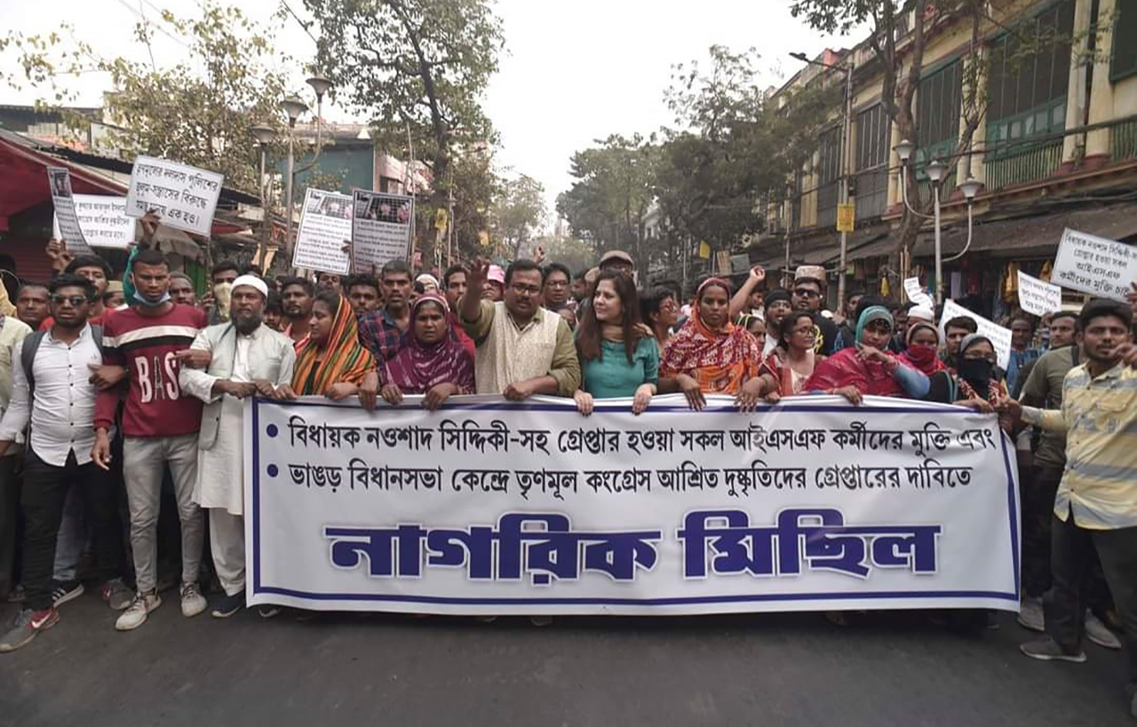নাগরিক মিছিল-এর ডাক দিয়েছিল ‘নাগরিকপঞ্জী বিরোধী যুক্তমঞ্চ’। একটি নাগরিক সংগঠন। ‘পশ্চিমবঙ্গে আক্রান্ত গণতন্ত্র রক্ষার্থে’ এই মিছিলের ডাক। সমাজ মাধ্যমে প্রচারিত পোস্টে বড়ো হরফে তা লেখা হয়েছে। আরও লেখা হয়েছে, ‘বিধায়ক নওশাদ সিদ্দিকী-সহ গ্রেপ্তার হওয়া সকল আইএসএফ কর্মীদের মুক্তির দাবিতে’ এই নাগরিক মিছিল। দলমত নির্বিশেষে সকল নাগরিককে মিছিলে যোগ দেওয়ার আবেদনও রাখা হয়েছিল।