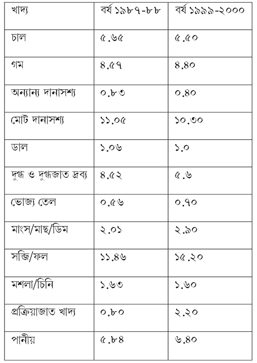 ভারতীয় শহুরে জনগণের মাথাপিছু গড় খাদ্য গ্রহণ (কেজি/৩০দিন)