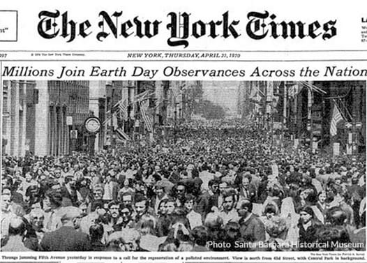 এরপরে ১৯৭০ সালে ২২ এপ্রিল প্রথমবার বসুন্ধরা দিবস পালিত হয়। সেইদিন গোটা আমেরিকার বিভিন্ন প্রান্তে কয়েক হাজার মানুষ মিছিল, সঙ্গীতানুষ্ঠান, বক্তৃতা এমনকি মেলার মাধ্যমে পরিবেশ রক্ষার ডাক দেয়। প্রাথমিক ভাবে স্কুল কলেজে “টিচ-ইন” অর্থাৎ পরিবেশ শিক্ষার জায়গা থেকে এই উদ্যোগ শুরু হলেও পরবর্তীতে এই উদ্যোগ আন্দোলনে রূপান্তরিত হয়। অনেকের মতে সেদিন প্রায় দু-কোটির কাছাকাছি মানুষ সামিল হয় যা তখনকার আমেরিকার মোট জনসংখ্যার প্রায় ১০%। সেইদিনের একটি বক্তৃতায় নেলসন বলেন, “Our goal is an environment of decency, quality, and mutual respect for all other human creatures and for all living creatures.”