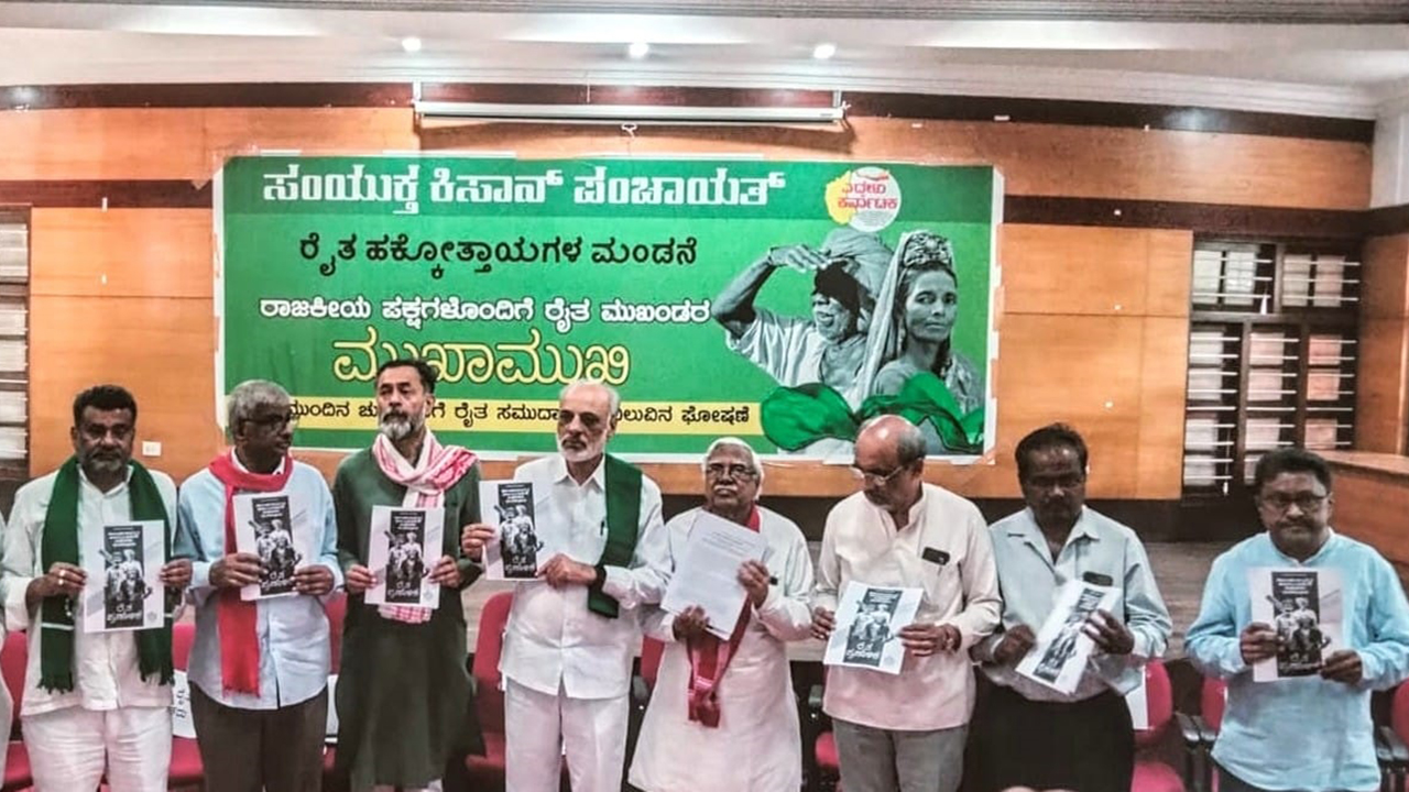 SKM and state level farmers organisations of Karnataka today organised Samyukta Kisan Panchayat at Bangalore. A Charter of Demands containing urgent demand of farmers was released at the Panchayat and presented to the major political parties of Karnataka, JDS and Congress, whose leadership were invited to and attended the Panchayat. The leadership of BJP, though invited, did not turn up.