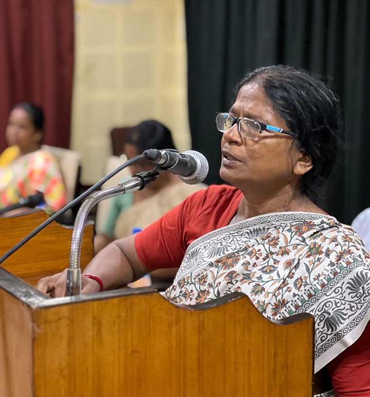 আজ গ্রাউন্ডজিরোর পক্ষ থেকে যারা এখানে আছেন… মঞ্চে উপস্থিত আর সামনে বসে আছেন যাঁরা সকলকেই আমার শ্রদ্ধা, ভালোবাসা। ওয়েস্ট বেঙ্গল অঙ্গনওয়াড়ি ওয়ার্কার্স অ্যান্ড হেলপারস ইউনিয়ন-এর পক্ষ থেকে আমিও কিছু বলতে চাই। ইসমত আরাদি আগেই বলে গেছেন “আশা” নিয়ে। তিনি আশা কর্মী ইউনিয়ন এর রাজ্য সম্পাদিকা এবং আশা মিড ডে মিল ও স্বাস্থ্য কর্মী অল ইন্ডিয়া সম্পাদিকা।