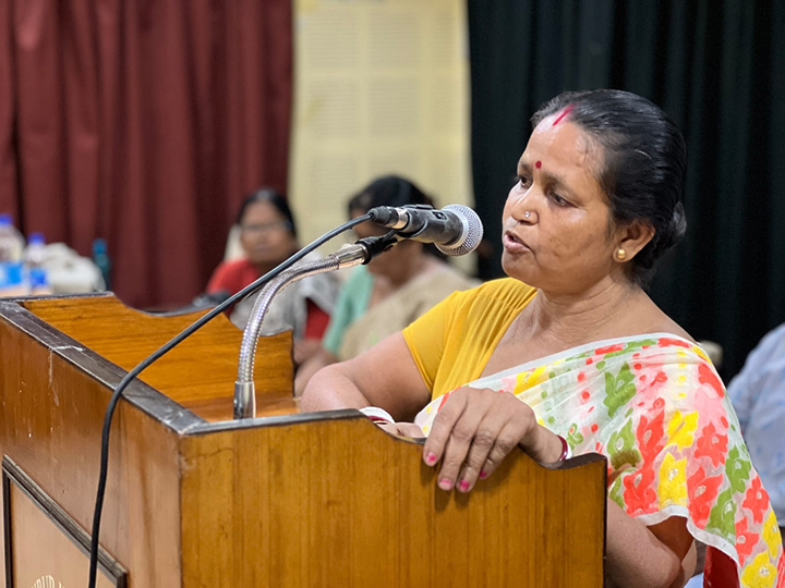 আমরা এই আন্দোলনটা চালিয়ে যাচ্ছি, শুধু এখানে নয়, সারা রাজ্যে সারা ভারতবর্ষ জুড়ে এই লড়াইটা চলছে। বিভিন্ন রাজ্যে অঙ্গনওয়াড়ি কর্মীরা কিন্তু লড়াই করে তাদের দাবি আদায় করেছে। হরিয়ানা, দিল্লিতে রাজ্য সরকার বেশি টাকা দেয়, কেন্দ্রীয় সরকার সমান দেয়। ২০১১ সালে কেন্দ্রীয় সরকার টাকা বাড়িয়েছিল, তারপর এই ২৩-সাল হল, একটি পয়সাও বাড়ায়নি। তাহলে এরকম একটা অবস্থায় লড়াই আন্দোলন ছাড়া আমাদের দাবি আদায় হবে না। সমস্ত জায়গায় অঙ্গনওয়াড়ি কর্মীদের এই লড়াই আন্দোলনে যুক্ত হতে হবে। আজকে আপনারা যে আমাদের ডেকেছেন, খুবই ভালো লেগেছে। বাস্তবে এইভাবেই প্রতিদিন আমরা বঞ্চনার স্বীকার হচ্ছি, পঞ্চায়েতে যারা মেম্বার আছে তারাও আমাদের হেনস্থা করছে। এছাড়াও এখানে যারা সাংবাদিকরা আছেন তাদের বলব আমরাও সংবাদমাধ্যমে লকডাউনের সময় বলি যখন রান্না বন্ধ হয়ে গেছিল। আমরাও সাংবাদিকদের জানাই একমাত্র রান্না করা গরম খাওয়ার চালু না হলে মা এবং শিশুদের স্বাস্থ্যের পরিষেবা ঠিক রাখা যাবে না। তখন রান্না চালু হয়। সংবাদমাধ্যম আমাদের অনেকটা এগিয়ে নিয়ে গেছেন তবুও বলব, যদি অঙ্গনওয়াড়ি স্কিম ওয়ার্কার্সদের কথা আরো একটু বেশি করে ভাবেন আরো ভালো হয়। আপনারাও ভাববেন,এরকম প্রোগ্রাম যদি ওনারা করেন, আমরা যোগ দিতে পারি, বিশেষভাবে আমাদের যে বঞ্চনার কথা তা সবার সামনে আসে, সরকারি স্বীকৃতি পাওয়া যায়, সেগুলো নিয়ে যদি আলোচনা হয় তাহলে খুবই উপকৃত হব। সবাইকে অভিনন্দন জানিয়ে এই বলে আমার ছোট্ট বক্তব্য এখানেই শেষ করলাম।