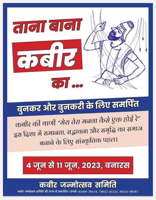 Kabir Janmotsav Samiti has been carrying a week-long campaign ‘Tana Bana Kabir Ka’ in various Bunkar localities of Benaras from June 4-11, 2023. After reaching thousands of Bunkars across the city, today’s cultural evening had generated high energy and enthusiasm for participation.