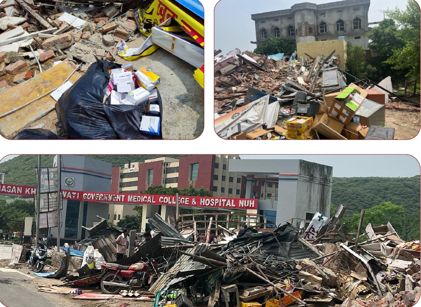 As of 7th of August, the demolition drive has been halted by a judicial order issued by the Haryana and Punjab High court, stating that, “the law and order problem is being used as a ruse to bring down buildings without following the procedure established by law. The issue also arises whether the buildings belonging to a particular community are being brought down under the guise of law and order problem and an exercise of ethnic cleansing is being conducted by the State.” The High Court also berated the home minister’s statement who likened bulldozers to a form of “ilaaj” or “treatment” during the government’s action in regard to the outbreak of communal violence. But by then hundreds of homes, shops, hotels and makeshift settlements, mostly belonging to the Muslims have already been destroyed. The Hindustan Times reported that over 750 houses, shops and establishments have been demolished since the drive started.