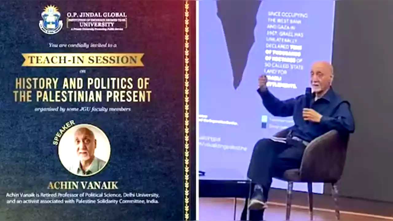 On the 1st of November, some faculty members at O.P. Jindal Global University organised a teach-in event under the title ‘The History and Politics of the Palestinian Present,’ by inviting Professor Achin Vanaik, a retired Professor of International Relations of Delhi University, who has also been a lifelong activist. Firstly, I am thankful to the faculty organizers of the teach-in for conducting this event. The event’s triumph was unmistakable, evident in the overwhelming turnout of students in the audience. Throughout my three years at the university, I have never seen the auditorium so full that I had to sit on the staircase with a plethora of other attendees, due to lack of seats. These types of gatherings infuse a revitalizing energy into the essence of this private university.