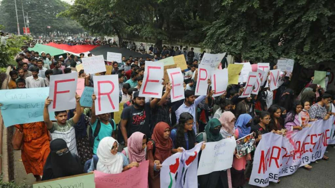 The students of Dhaka University on Wednesday brought out a massive “March for Palestine” at the campus. Several hundred students joined the solidarity program.