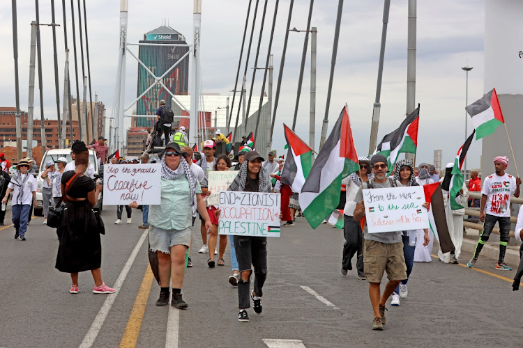 Thousands of South Africans in Johannesburg took onto the streets in commemoration of the International Day of Solidarity with Palestine. pic.twitter.com/O8M1MiXswi