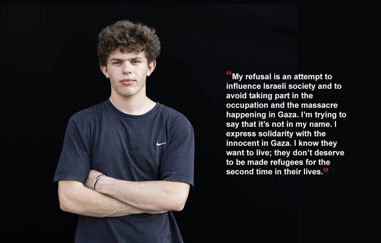 “My refusal is an attempt to influence Israeli society and to avoid taking part in the occupation and the massacre happening in Gaza. I’m trying to say that it’s not in my name. I express solidarity with the innocent in Gaza. I know they want to live; they don’t deserve to be made refugees for the second time in their lives.”