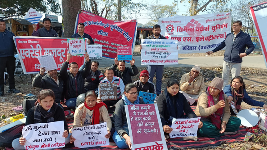 In Uttarakhand, protest programs were held in Rudrapur, Haridwar, Dehradun and Kashipur. In Rudrapur, Sanyukt Shramik Morcha and industrial workers from various factories like Interarch, Bhagwati Micromax, Nestle, Mahindra, Adwik, Bajaj Motors, PDPL, Mantri Metal, Neel Metal, CII India, Tata Autocom, Rocket Riddhi Siddhi, LGB, Karolia Lighting, Lucas TVS etc in SIDCUL industrial area took part in workers rally and protest demonstration in front of the labour department in Rudrapur city. In Haridwar SIDCUL area, a protest demonstration was held at the BHEL factory gate by the BHEL Mazdoor Trade Union and other factory workers. Protests were held in the state capital Dehradun and Kashipur industrial area. MASA constituents IMK, MSK and MSS took active roles in organizing protest programs in Uttarakhand.