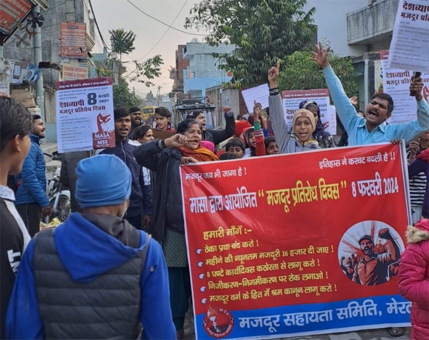 Mazdoor Adhikar Sangharsh Abhiyan (MASA), a coordination platform of 17 workers organisations/unions in India, observed “Mazdoor Pratirodh Divas/Workers’ Resistance Day” on 8th February, 2024, all over the country against the anti-worker policies and to press for the just demands of the working masses in the country.