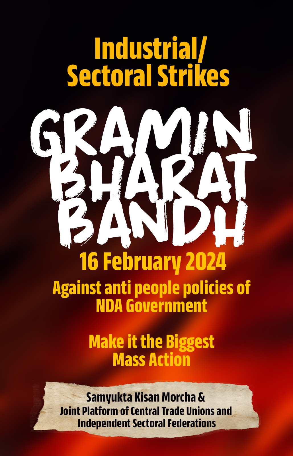 Meanwhile, the Samyukta Kisan Morcha has strongly objected and condemned the arrest and remand of kisan leaders by the BJP led Mohan Yadav Government of Madhya Pradesh. The arrests are in the context of the Grameen Bandh and Industrial/ Sectoral Strike on 16th February 2024, a joint call given by SKM and the Joint Platform of Central Trade Unions, Independent/Sectoral Federations, Associations against the anti-farmer, anti-worker and anti-people policies of the BJP led Narendra Modi Government.