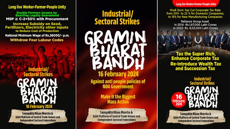 The 21 Point Charter of Demands released by SKM and JPCTUs in context of the all India Grameen Bandh and Industrial / Sectoral Strike on 16th February 2024. Groundxero| 15th February, 2024 Samyukta Kisan Morcha (SKM) and Joint Platform of Central Trade Unions and Independent Sectoral Federations/Associations has called Grameen Bandh and Industrial … Continue reading 21 Point Charter of Demands: Gramin Bharat Bandh and Industrial/Sectoral Strike