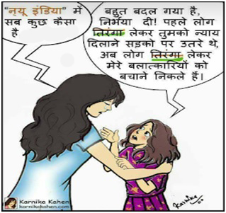 A few years ago an image circulated on social media. The image captured the eight-year-old girl from the Bakerwal community in Kashmir, who was abducted, raped and killed, meeting Nirbhaya after her tragic death. Their conversation inevitably revolves around the issues of sexual violence and the ways in which the former has come to be implicated within popular national symbols and nationalisms. In the depicted conversation, Nirbhaya enquires about the state of the ‘New India,’ to which the Kathua rape case victim responds, ‘Bahut badal gaya hai, Nirbhaya di, pehele log thiranga lekar tumko nyaya dilane sadko par uthre the, ab log tiranga lekar mere balatkariyon ko bachane nikle hai.’  (‘A lot has changed, Nirbhaya. Previously, people used to take the national flag to fight for justice for you on the streets. Now, people take the national flag to protect my rapists.’)