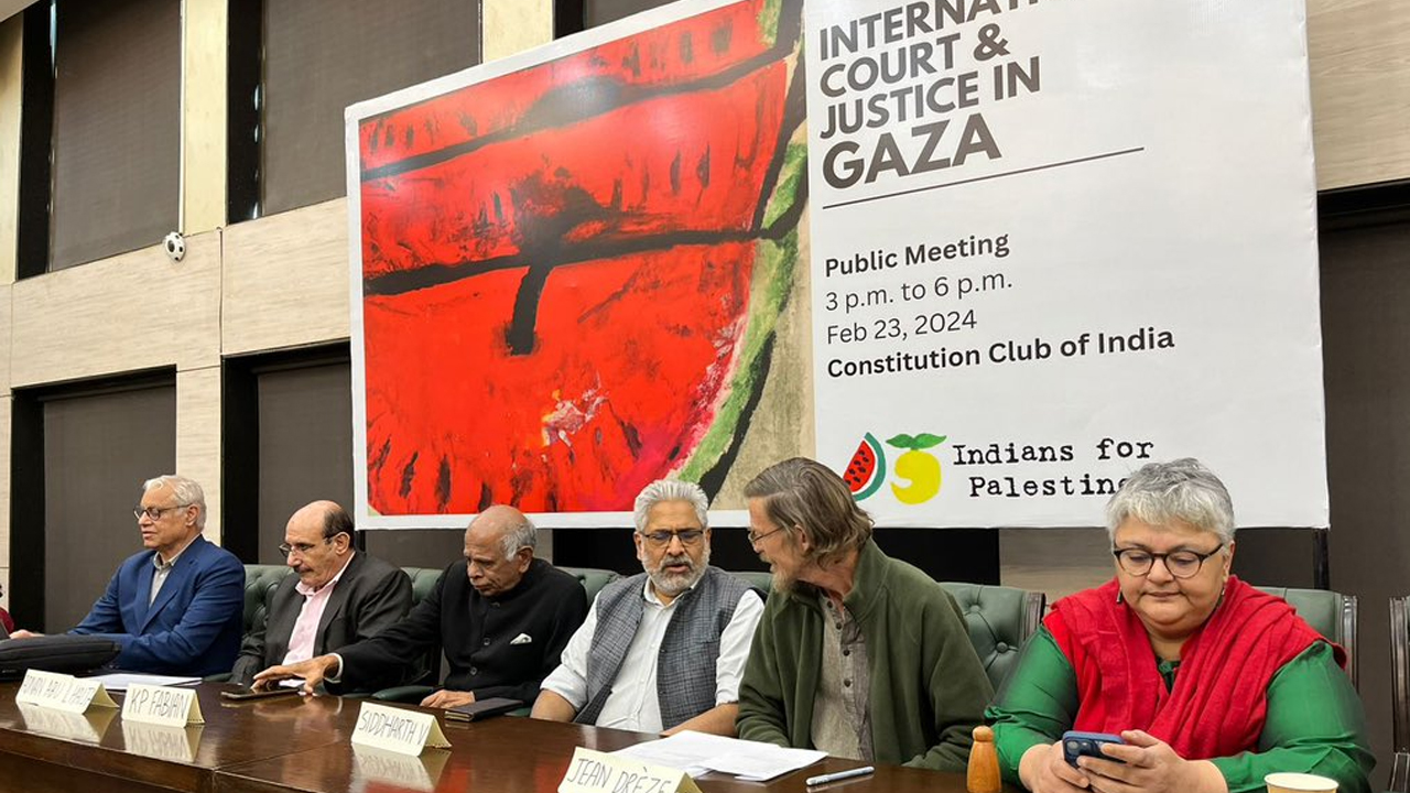 Indians for Palestine (a group of concerned citizens) held a meeting at the Constitution Club in New Delhi on Friday, February 23 to exert pressure on the Indian government to follow the International Court of Justice (ICJ) ruling on Gaza and condemn Israeli actions. The meeting was attended by representatives of political parties, media, diplomatic community, legal profession, foreign policy experts, among several hundred participants. Among the speakers were lawyer Anand Grover, former ambassador K.P. Fabian, journalist Siddharth Varadarajan, and political leaders including Dipankar Bhattacharya, Asaduddin Owaisi, Amarjeet Kaur and Subhashini Ali.