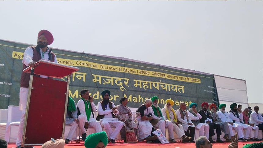 The Maha Panchayat was called by Samyukta Kisan Morcha (SKM) to adopt Sankalp Patra or Letter of Resolution to intensify the fight against the pro corporate, communal, dictatorial policies of the Modi Government; to fight to save farming, food security, livelihood and the people from corporate loot.