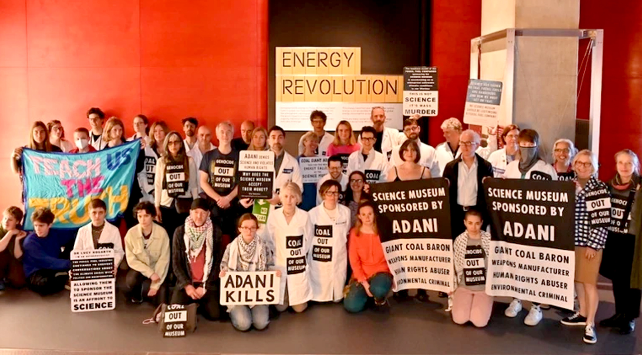 Feature Image : Young people and scientists occupied Energy Revolution, a new gallery at London’s Science Museum sponsored by the coal giant Adani. (Photo: Extinction Rebellion)
