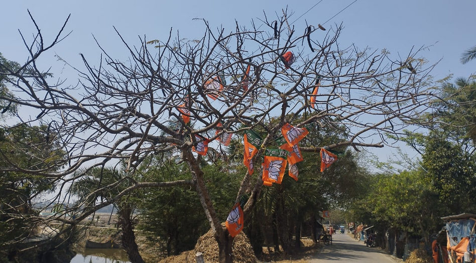 সঙ্ঘ পরিবার সেখানে প্রায় একযুগ ধরে নিজেদের জমি শক্ত করার চেষ্টা করছে, তারা একটার পর একটা পাকা মন্দির বানিয়ে চলেছে। যেখানে পানীয় জলের জন্য গ্রামের জমিহারা, অত্যাচারিত নারীদের কয়েক মাইল হেঁটে গিয়ে এলাকার একটি মাত্র নলকূপের সামনে লাইন দিতে হয়, সেখানে শুকিয়ে যাওয়া গাছের ডালে ডালে ভর্তি করে গেরুয়া পতাকা লাগিয়ে রাখা হয়েছে। প্রচুর অর্থব্যয় করে সেখানে বিভিন্ন মূলধারার হিন্দু দেবদেবীর পুজো, সংকীর্তনের আয়োজন করা হয়। গ্রামের মহিলারা ঐক্যবদ্ধ হয়ে প্রতিবাদ করার আগে আরএসএস-এর আদিবাসী শাখা আদিবাসী বিকাশ পরিষদ জমিদখল, শারীরিক নির্যাতন, যৌন নির্যাতনের বিষয়গুলির বিরুদ্ধে কোনো পদক্ষেপই নেয়নি, এবং তাঁদের কোনো সাহায্যও করেনি। যে গ্রামগুলিতে পঞ্চায়েত নির্বাচনে কোনো গ্রামবাসী ভোট দিতে পারেন না, তৃণমূল গুন্ডামি করে জেতে, সেই এলাকাগুলোয় নবনির্মিত মন্দিরের আধিক্য চোখে লাগার মতো। আদিবাসী বিকাশ পরিষদের স্থানীয় কার্যকর্তা দিলীপ সর্দার গ্রামের মানুষদের জমি ফিরিয়ে দেওয়ার মিথ্যা আশ্বাস দিয়ে চলেছেন, কিন্তু বিজেপির প্রচারে বা মূলধারার সংবাদ মাধ্যমে জমি দখল বা ক্ষতিকর প্রজাতির চিংড়ি চাষের মতো গুরুত্বপূর্ণ বিষয়গুলি গৌণ হয়েই থেকে যাচ্ছে। বর্তমানে সন্দেশখালিতে অত্যাধুনিক যন্ত্রের সাহায্যে অস্ত্র খোঁজা হচ্ছে, হয়তো কিছুদিনের মধ্যেই সন্ত্রাসবাদীও খুঁজে বের করে ফেলবে সংবাদমাধ্যমগুলি। সুন্দরবন অঞ্চলের বাস্তুতন্ত্র রক্ষা বা সেখানকার মানুষের নিরাপত্তা ও স্বাভাবিক জীবনযাপন সুনিশ্চিত করার কোনো অভিপ্রায় বিজেপির নেই; তারা আপাতত ধর্মীয় মেরুকরণের মাধ্যমে অঞ্চলবাসীর মন বিষিয়ে চলেছে।
