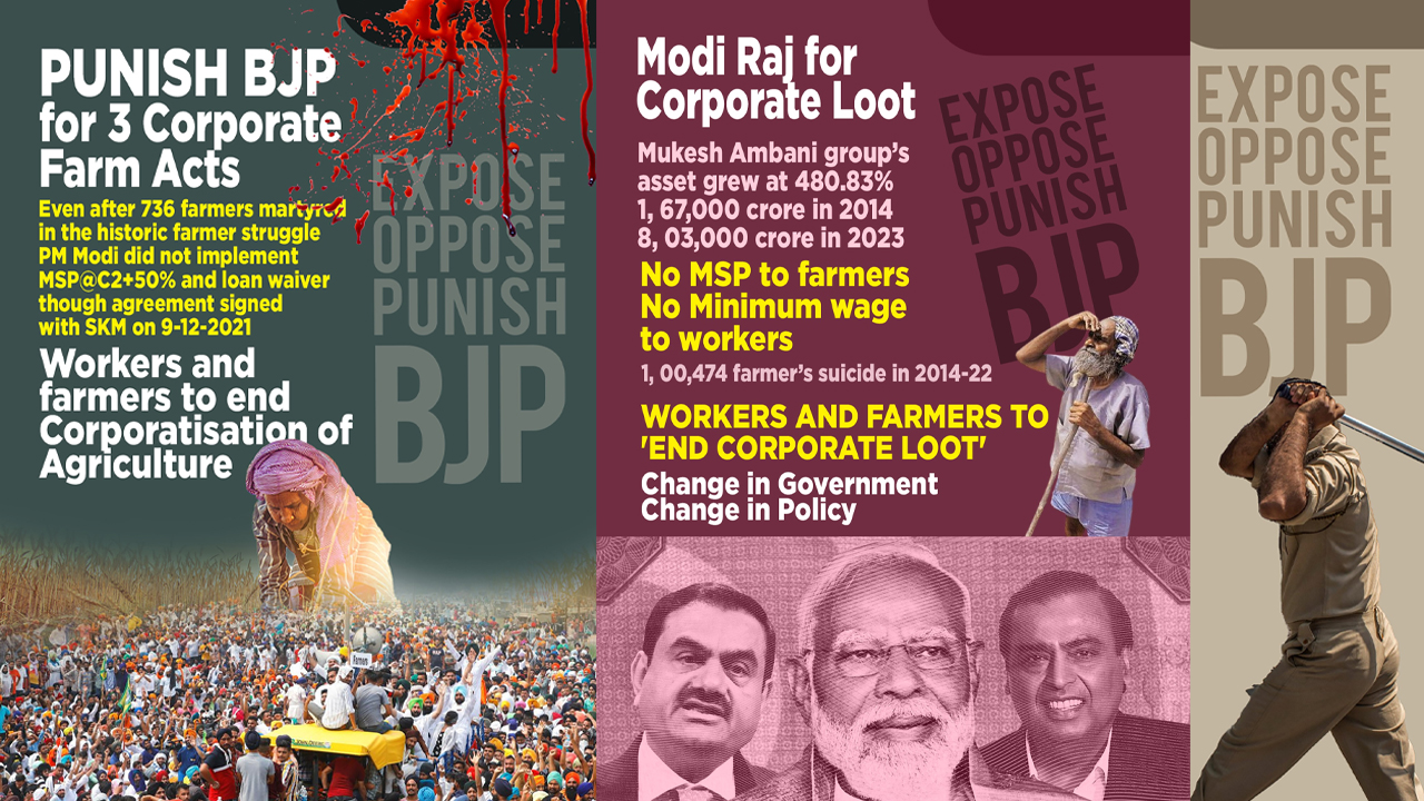 The joint platform of farmers unions’ concluded by appealing workers and farmers to punish BJP for corporatisation of agriculture, wealth inequality and unemployment.