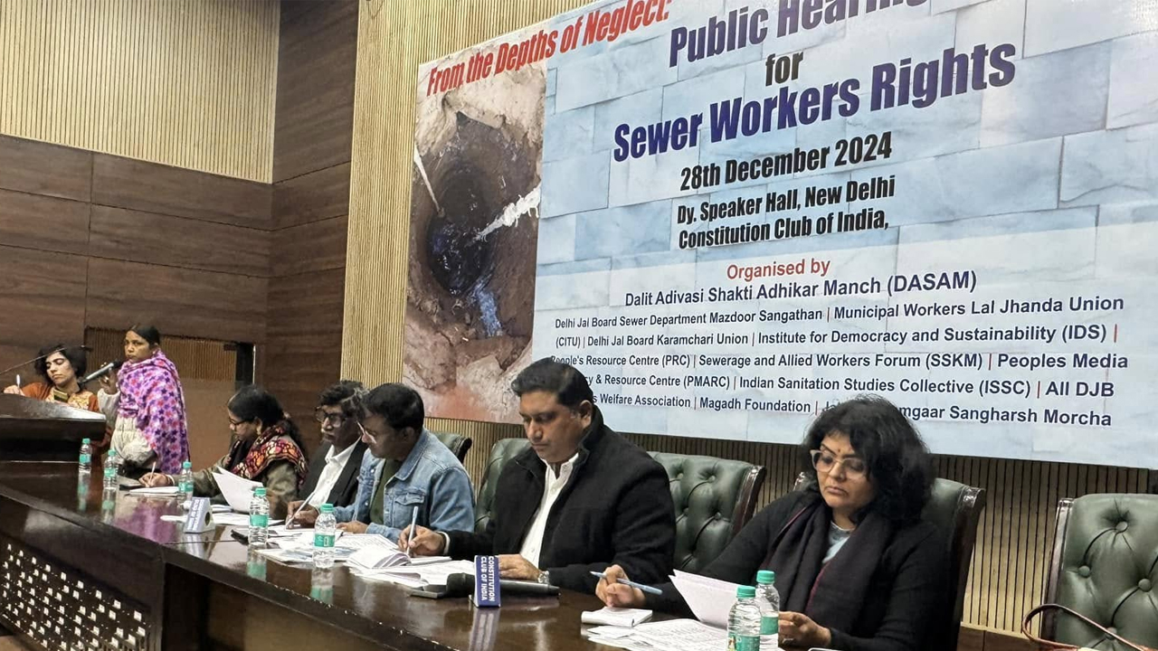 Despite being outlawed, the practice of manual scavenging continues to claim the lives of sewer workers across India. The purpose of the public hearing was to provide a platform to hear the plight of families of the victims who lost their lives while cleaning the sewer and septic tanks and those who are still engaged in the obnoxious occupation and how the system responds to their issues. The victims’ families, experts, and advocates came together and demanded systemic reforms and better enforcement of law.