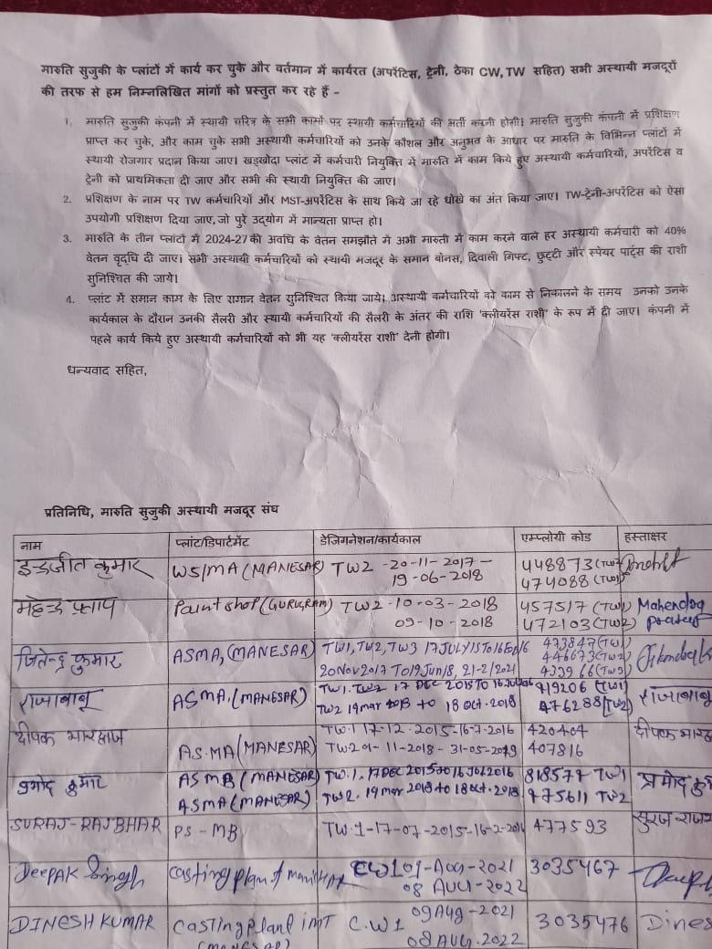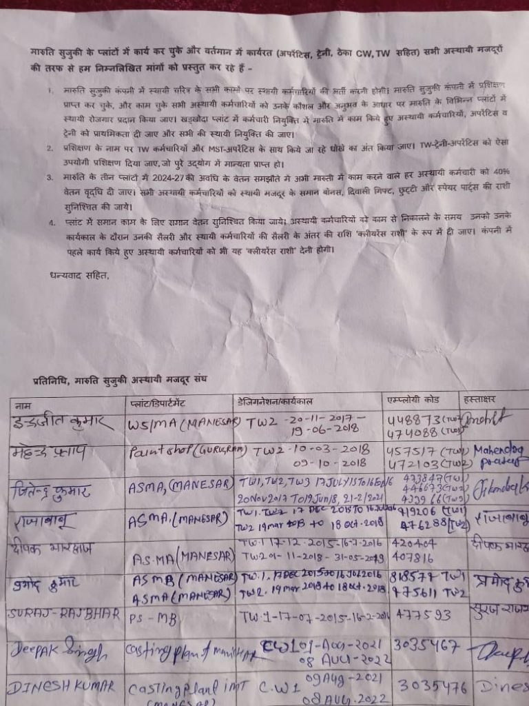 Issued by: Working Committee, Maruti Suzuki Asthayi Mazdoor Sangh