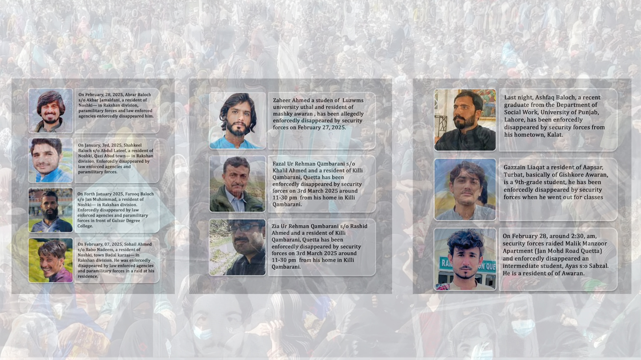 In a recent development, the Pakistan’s Counter Terrorism Department (CTD), operating under military directives, has now adopted a new strategy against previously abducted forcibly disappeared persons. The CTD orchestrated fake encounters that resulted in the deaths of numerous forcibly disappeared Baloch youth. On 23 November 2023, the CTD reported the killing of four militants in an encounter, but these individuals were identified as Baloch youth who had previously been abducted by Pakistani forces. Families, including that of Balach Mola Baksh, protested this killing in Turbat, demanding justice. The protest gained widespread support and developed into a march to Quetta and later Islamabad under the umbrella of the Baloch Yakjehti Committee. Led by the Baloch Yekjethi Committee and joined by families of Baloch missing persons, a term used to refer to those abducted by Pakistani forces, the long march reached Islamabad on 2 December 2023. The demonstrators protested against the Baloch genocide and the forced abduction of Baloch civilians, and called for the immediate release of all those abducted.