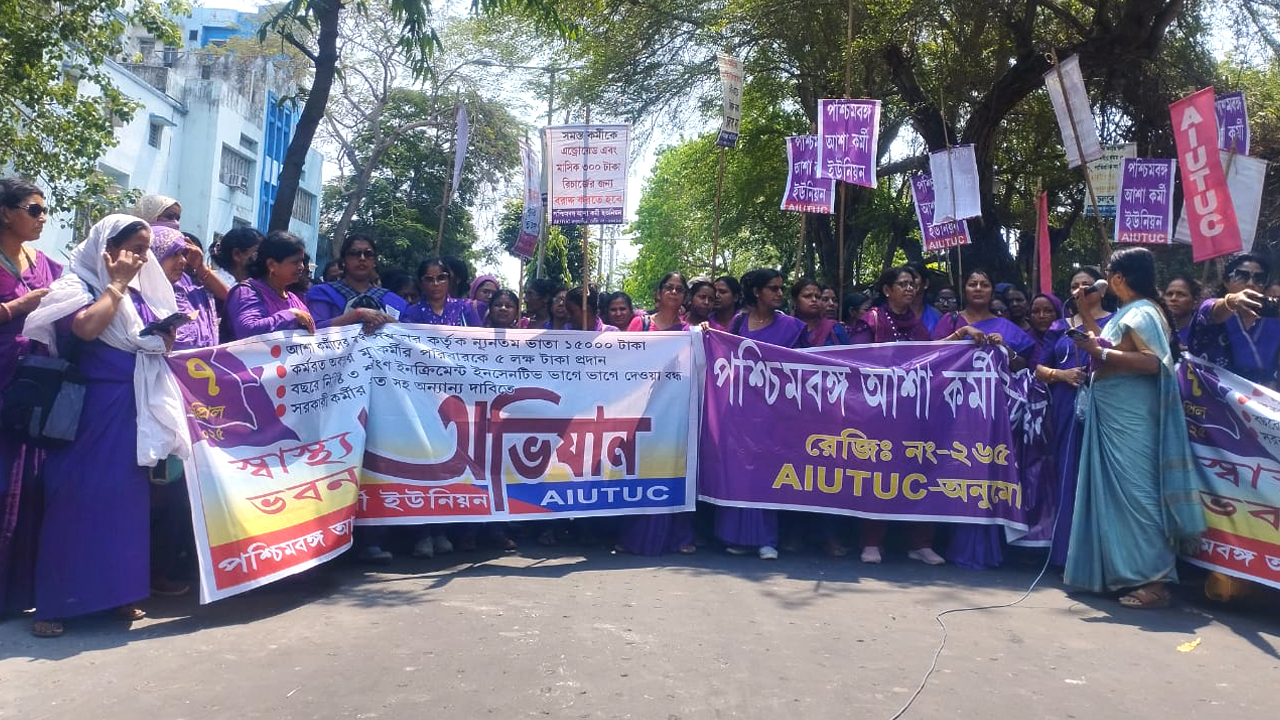 গর্ভবতী মহিলা, সদ্যজাত শিশুদের স্বাস্থ্য পরিষেবা দেওয়ার জন্য কাজ করে চলেছেন এ রাজ্যের প্রায় ৭০ হাজার মহিলা আশা কর্মী। বিভিন্ন সময়ে তাঁদের উপর গ্রামীণ স্বাস্থ্য পরিষেবা কতটা নির্ভরশীল তা সরকারের তরফে স্বিকার করা হলেও এই কর্মীদের পেশাগত ক্ষেত্রে দীর্ঘদিন ধরে যে বঞ্চনা ও সমস্যার মুখোমুখি হয়ে কাজ করতে হচ্ছে সে বিষয়ে সরকার ও প্রশাসন সম্পূর্ণ উদাসীন। গত ৭ এপ্রিল আশা কর্মীদের কলকাতায় স্বাস্থ্যভবন অভিযান বিষয়ে সুদর্শনা চক্রবর্তীর রিপোর্ট।