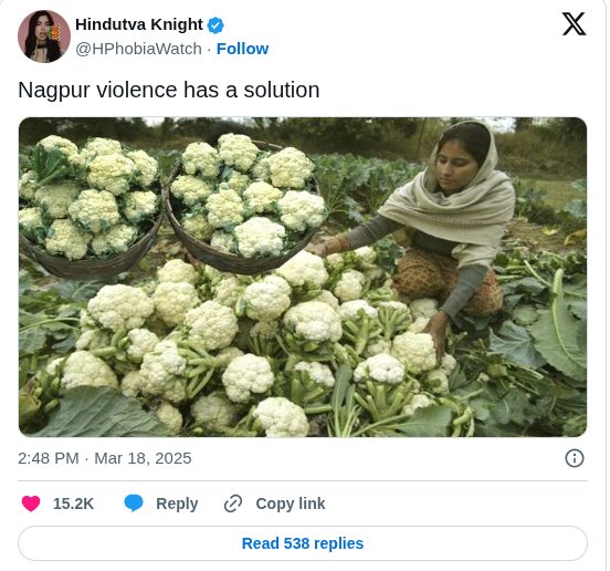 In March 2025, after communal clashes broke out in Maharashtra’s Nagpur, Right-leaning social media users referred to cauliflowers, as a potential ‘solution’.