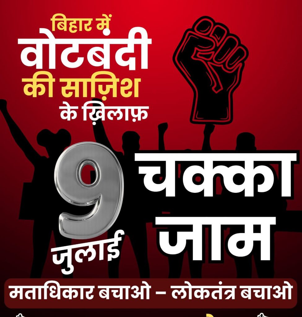Meanwhile, the Opposition parties, including the Rashtriya Janata Dal (RJD), Congress and the Left constituents, in Bihar have given a state-wide protest call against the ongoing drive on 9th July coinciding with the all India strike called by trade unions. The parties have termed the entire exercise as a ‘Votebandi’ comparing it with the disastrous ‘Notebandi’ by the BJP-led Union government. They allege the stringent documentation requirements and the July 25 deadline risk disenfranchising millions, particularly marginalised communities like Muslims, Dalits and migrant workers.