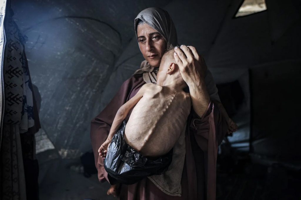 Muhammad Zakariya Ayyoub al-Matouq, a 1.5-year-old child in Gaza City, Gaza, faces life-threatening malnutrition as the humanitarian situation worsens due to ongoing Israeli attacks and blockade, on July 21, 2025. Having dropped from 9 to 6 kilograms, he struggles to survive in a tent in Gaza City, where milk, food, and other basic necessities are lacking. (Photo by Ahmed Jihad Ibrahim Al-arini/Anadolu via Getty Images)