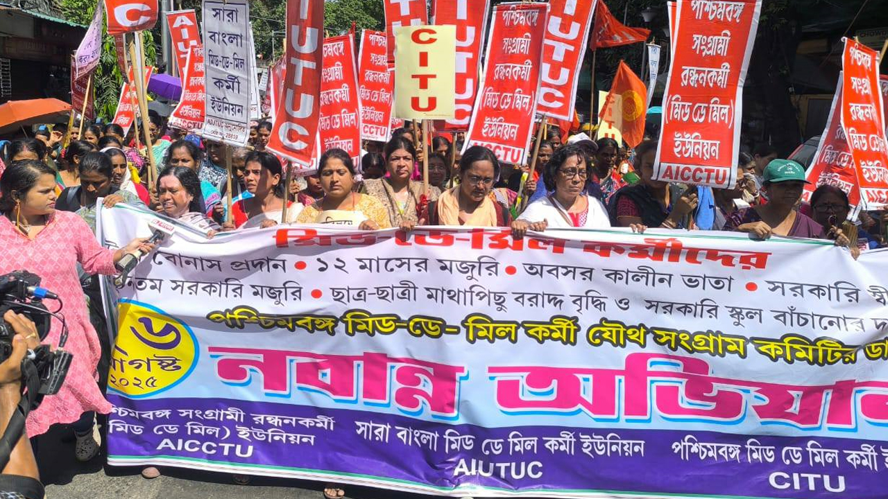 ২৬ অগাস্ট ২০২৫ সমগ্র পশ্চিমবঙ্গ থেকে প্রায় চার হাজারেরও বেশি মিড-ডে মিল কর্মী কলকাতার হাওড়া ও শিয়ালদহ স্টেশনে পৌঁছে সেখান থেকে ধর্মতলায় জমায়েত হন। রাজ্যের তিনটি কেন্দ্রীয় ট্রেড ইউনিয়ন পরিচালিত মিড ডে মিল কর্মী সংগঠনের যৌথ মঞ্চ – পশ্চিমবঙ্গ মিড-ডে মিল যৌথ সংগ্রাম কমিটির ডাকে এদিন ছিল নবান্ন অভিযান কর্মসূচী। তাঁদের উদ্দেশ্য ছিল নবান্ন অভিযান করে, মুখ্যমন্ত্রী মমতা বন্দ্যোপাধ্যায়ের সঙ্গে দেখা করে নিজেদের দাবি-দাওয়া সংক্রান্ত ডেপুটেশন জমা দেওয়া। যদিও আগেই দেখা করতে চাওয়ার অনুরোধ জানিয়ে মুখ্যমন্ত্রীর দপ্তরে ই-মেইল করা হয়েছিল, কিন্তু তার কোনও উত্তর তাঁরা পাননি। তাঁরা জানতে পারেন মুখ্যমন্ত্রী বর্ধমান চলে গেছেন। ধর্মতলায় পুলিশ এই শান্তিপূর্ণ অভিযান আটকে দেয়। উপস্থিত মিড-ডে মিল কর্মীরা এরপর সেখানেই অবস্থান শুরু করেন। তারপর তাঁদের ৬ জন প্রতিনিধিকে নবান্ন-তে নিয়ে যাওয়া হয়। সেখানে সচিব পর্যায়ের কেউ তাঁদের সঙ্গে দেখা করে ডেপুটেশন-এর কপি জমা নেন। আশ্বাস দেওয়া হয়, আগামী তিন-চার দিন পরে মন্ত্রকের তরফে তাঁদের সঙ্গে বৈঠকের ব্যবস্থা করা হবে।
