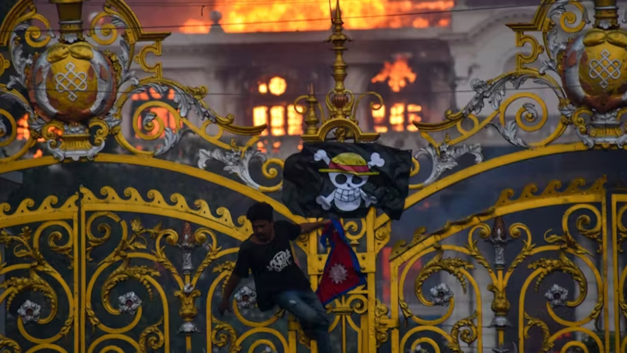 From Paris and Rome to Jakarta, Indonesia, and New York, a curious banner has appeared in protest squares. With hollow cheeks, a broad grin and a straw hat with a red band, the figure is instantly recognizable and has been hoisted by young demonstrators calling for change. In Kathmandu, Nepal, where anger at the government boiled over in September 2025, the flag became the defining image as flames spread through the gates of Singha Durbar, Nepal’s ornate palace complex and seat of power.