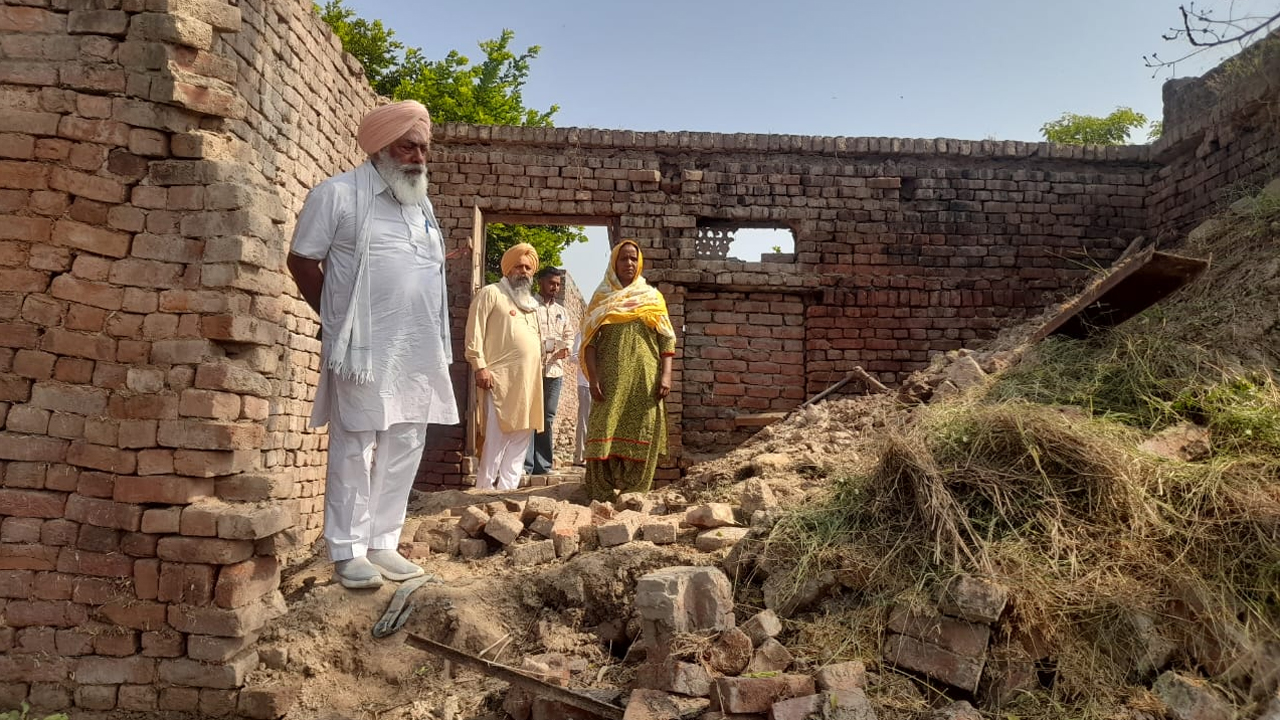 AIKS leaders Sucha Singh Ajnala and Bhupinder Singh Chinna visit a mid-day meal worker in her home. The house has been completely washed away in the flood water. No government officers have visited or made physical verification till today 25 October 2025. Her house is in the Assembly constituency of Dera Baba Nanak in Gurdaspur District and Gurdeep Singh Randhawa from Aam Admi Party is the MLA. There was no physical verification in the entire village so far, and the MLA also did not visit the village in the last two months.