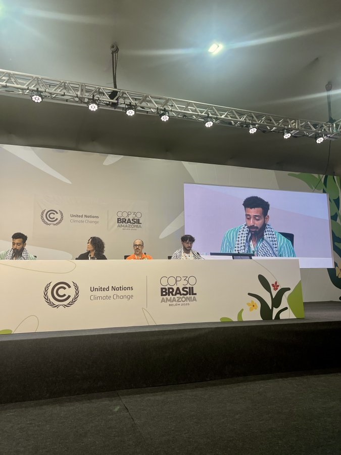 “A genocide needs media complicity, government complicity, weapons, funding, but it also needs oil to keep operating, and we need to stop that oil from flowing there,” said Leandro Lanfredi, Rio de Janeiro director of the National Federation of Oil Workers Brasil, during a press briefing unveiling the report at COP30.