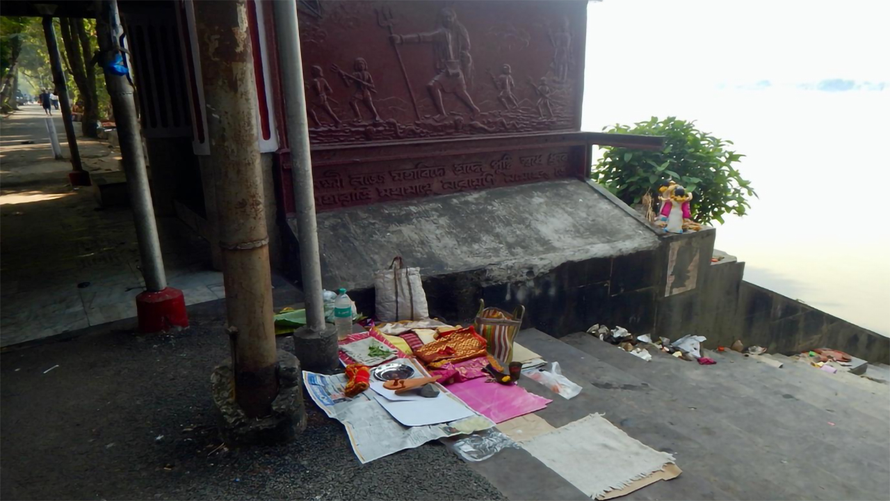 The walk echoed. What does a city keep? The neighbourhoods of every city shift. In the social and economic evolutionary process, the city even loses its identity. Once a connection to the Kolkata Port with sprawling markets and artisans’ workshops that catered to the eastern region of India, Chitpur is now recognised for the several ghats it has, used for ritualistic purposes. The sense of layered memory, central to Amrita’s work, is the nucleus of a city’s identity, which always is transitioning. Every rewrite of the city’s identity leaves something unsaid that gets preserved in the overlooked sounds, smells, and tastes of the metropolis that can be assessed through points of ecological mergers, where the land and water meet. Ending the walk at the Kashi Mitra Burning Ghat is poignant of these transitions. The river here receives both the divine offerings and the ashes of the departed. A non-ceremonial co-existence of life, loss, hope, renewal, and the end.