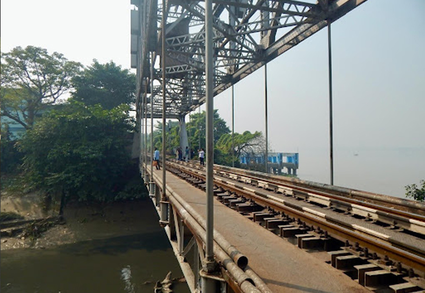 The train line running across the bridge placed above the symbolic confluence with trains rushing past behind us, Amrita says, is a constant prompt about the haste created by the Anthropocene, the man-made ecological age we inhabit which is marked by escalating climate change. We do not have enough time to save our planet, we must be mindful now. Also, a subtle push to acknowledge the hurriedness of urban lives and how in varied noises and sounds the truths of our city’s ecology and present city lives survive. Colonial infrastructure not only polluted the environment but also came on the shoulders of expanded deforestation and concrete embankment building, which added to the impacts of the Anthropocene in the present day.